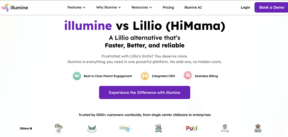 Studied leading childcare platforms such as Lillio (HiMama), Brightwheel, Procare, Famly, Playground, and Kangaroo.